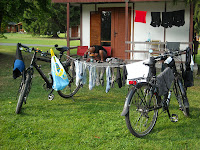 Bijgekomen van het hondenavontuur komen we uiteindelijk aan bij de camping. Aangezien er niet veel prijsverschil is met een tentplaats huren we ons een cabinehuisje op het terrein waar onze fietsen ook in kunnen. Het is niet echt schoon maar verder is er niks mis mee.