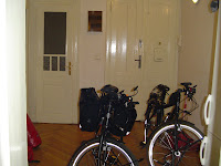 De lift naar de 1st etage waar ons appartement ligt is veels te klein om fietsen te vervoeren. Dus gezamenlijk tillen we de fietsen via de trap naar boven. Bij het aanschouwen van onze fietsen en materiaal zegt Vladimir “ …..I see you are proffesionals….” en wij beamen zijn statement braaf, geen tijd voor lange verhalen. Het mooie appartement is wonderlijk groot, 2 slaapkamers, woonkamer, badkamer, keuken, grote hal waar we onze fietsen parkeren. De hoge plafonds geven het geheel een nog meer ruimtelijke effect. Vladimir geeft ons nog de nodige informatie m.b.t. Praag. Hijzelf komt eigenlijk uit Slowakije maar is na zijn studie in Tsjechië blijven hangen waar hij via zijn bedrijfje mooie gebouwen huurt en verder verhuurt aan toeristen voor schappelijke prijzen.