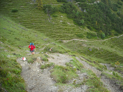 Het valt wonder boven wonder reuze mee. Misschien dat je bij de afdaling constant in de diepte kijkt en dat je daardoor eerder eraan went wie weet, maar we hadden niet zo'n moeite met het dalen langs die enorme afgrond. Na een klein uurtje zijn we weer onder op het pad dat ons weer via een lange weg naar Kirchberg zou leiden.