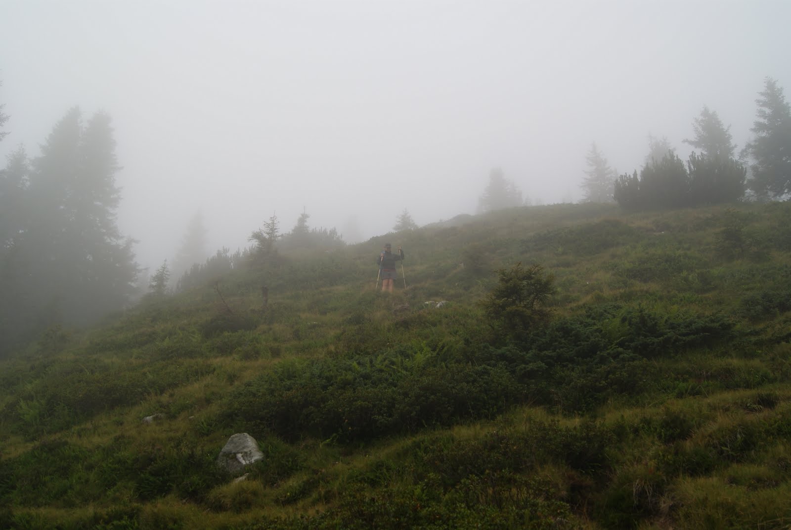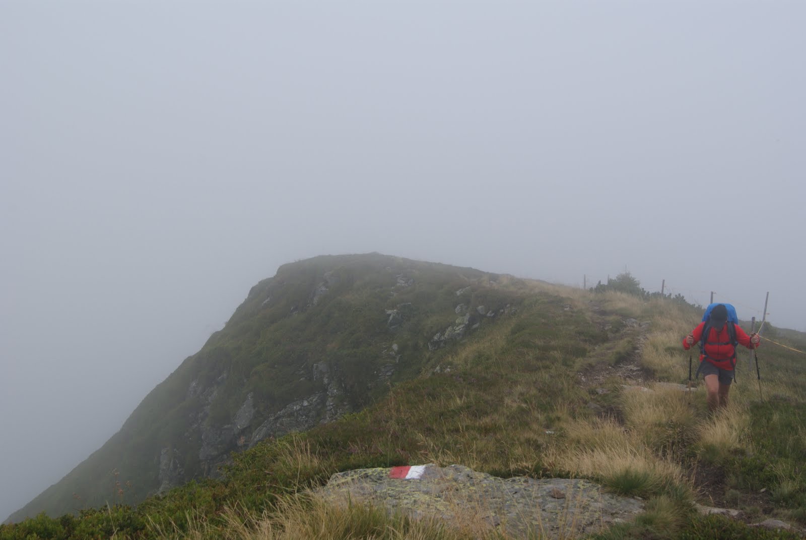 Volgens de beschrijving zullen de laatste 700 meter naar de top een zeer veeleisende klim worden en geloof me er is geen woord van gelogen. Gehuld in dichte mist worden die laatste 700 meters door ons beklommen over gladde rotsen, modder waar je bijna tot aan je enkels in wegzakt en wegglipt, losliggende stenen en dat alles stijl omhoog. Zwaar maar zeer mooi om te beleven en we waren dan ook in onze nopjes en genoten volop.