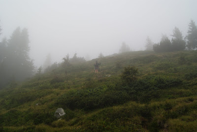 Vanmorgen regent het flink als we om 9.00, compleet gehuld in onze regenpakken, vertrekken voor onze tocht naar de Gampenkogel. Het zal volgens de beschrijving een pittige tocht worden maar we zijn klaar voor de 1957 meter hoogte.