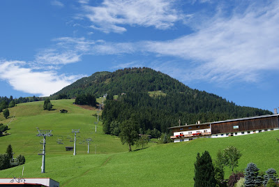 Een "wanderspecification"gegeven door de website "Kitzbuehler Alpen" classificeert de weg naar de Gaisbergtop aan als "een moeilijke maar zeer geliefde route”. Om de moeilijkheidsgraad nog wat op te krikken willen wij de tocht reeds beginnen vanaf de voordeur van ons appartement. Bijna iedereen die deze tocht maakt laat zich eerst luxueus van 837 meter, het niveau waarop Kirchberg ligt, via de Gasberglift op 1200 meter boven zeeniveau brengen om vandaar de uiteindelijke top op circa 1800 meter boven zeeniveau te bereiken. Wij dus eigenwijs niet. Met 1141 hoogtemeters gaat het constant flink bergopwaarts.