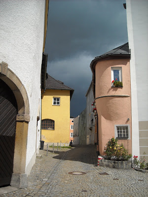 Bovengekomen lopen we via een wandelpad naar de voorkant van het klooster waar men een mooi panorama heeft over de stad Passau. We maken enkele foto’s en keren terug om de trap af te dalen naar het stadscentrum.