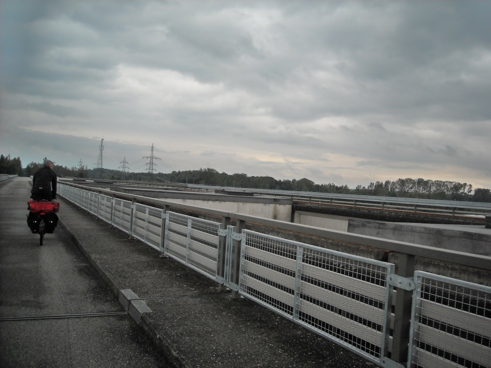 Net zoals gisteren is het weer wederom nat en grijs. Koud is het vandaag eigenlijk helemaal niet dus de we vullen de tijd met fietsen, regenjas en -broek aan, dan weer uit, dan weer aan en zo vervelen we ons nooit. Meestal liggen we een slag achter want doen we alles uit gaat het weer regenen en doen we alles aan puffen we van de warmte omdat het even opgehouden is met regenen. Onze wielen echter blijven op het natte wegdek hun spoor volgen naar Wenen.